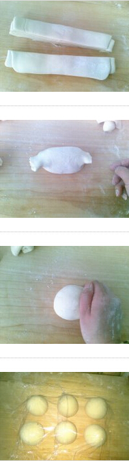 11.把切口朝下,兩頭握在右手里,用力揉,搓成圓形