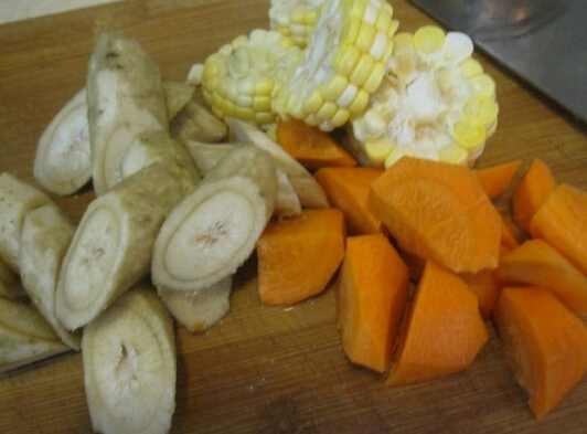 1.玉米、紅蘿卜、牛蒡,豬骨、姜片切塊 怎么做好吃