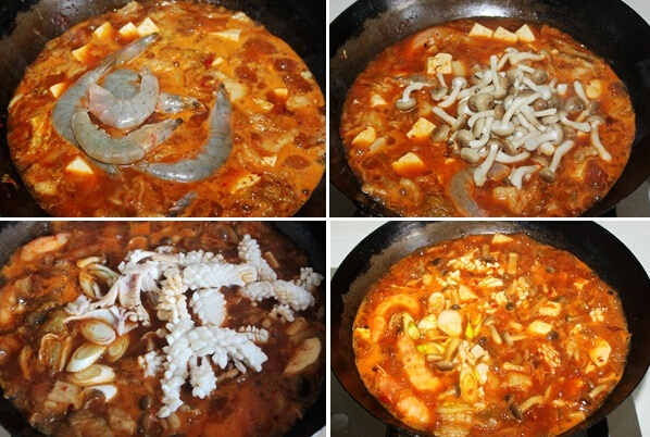 泡菜海鮮豆腐湯的制作: