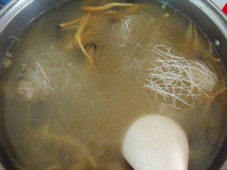 4 放入粉絲煮到八成熟(要是煮到喜歡的軟度,那么一會(huì)吃的時(shí)候就會(huì)膩)。