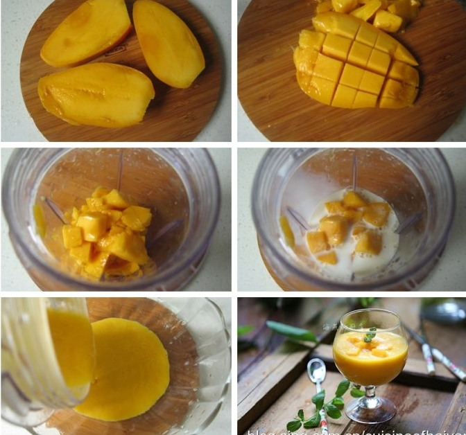 那么芒果去皮留肉,放入料理機(jī),倒入牛奶打成芒果泥,進(jìn)冰箱冷凍,沒有任何技巧,就是原料原料原料~
