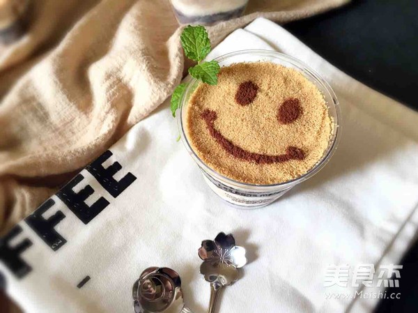 3.再過(guò)篩一些餅干碎放在最上面一層,增加美感,入口細(xì)膩;