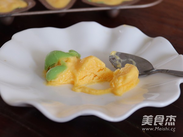 10.將混合好的芒果淡奶油從冰箱取出來,用勺子分裝在8連模上,放入冷凍室冷凍至少2個小時