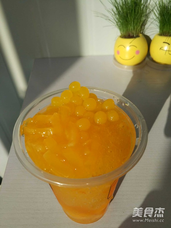 5.將我們第二步果醬冰倒入杯中,然后放上柳橙爆爆蛋和柳橙椰果。這款可以吸又可以吃的極致蜜橘柳橙沐冰就做好了。呵呵