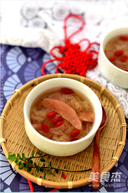每到節(jié)日新年,菜肴肯定都是雞鴨魚肉的葷菜比較多,大家都是舉杯歡慶,新年守歲熬夜也是必然的,所以就有可能會(huì)上火,所以真的需要多喝點(diǎn)湯湯水水來調(diào)劑一下,銀耳雪梨有降火,清肺的功效,在油膩加熬夜過后,來上這樣一碗清清甜甜、軟糯潤滑的甜湯絕對是享受哦!