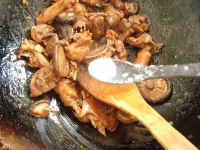 5.依次放入醋、料酒生抽、老抽、糖翻炒均勻。