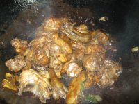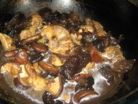 13.加入香菇木耳翻炒,加入泡香菇的水。