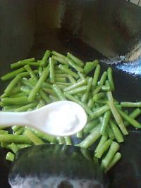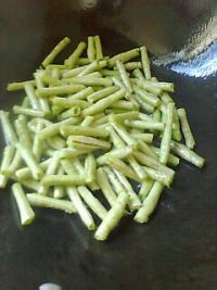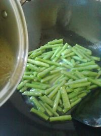 7.倒入豆角,翻炒兩下