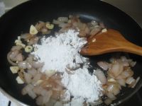 6.放入煎過(guò)的牛肉和汁水翻炒均勻。