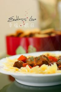 15.這樣就可以開(kāi)吃了,不過(guò)經(jīng)典的法式紅酒燉牛肉會(huì)配意大利面,我家里剛好有蝴蝶面。將蝴蝶面煮熟。