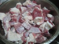 1.買回來(lái)的牛肉用清水浸泡1小時(shí),將血水充分浸泡出來(lái)。然后切成大塊,瀝干水分。