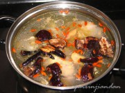 1.將靈芝撕成小塊與雞殼一起入鍋加水燒開(kāi)。