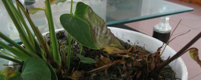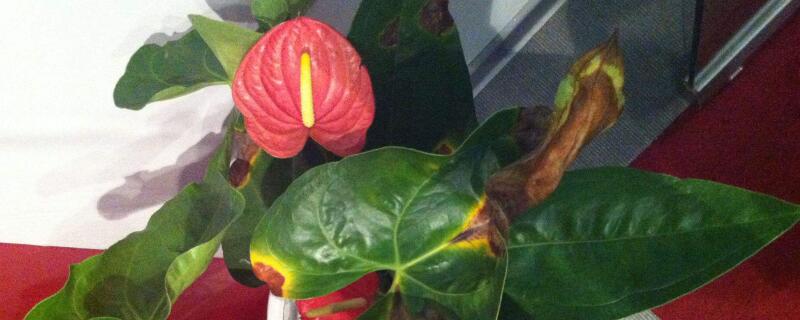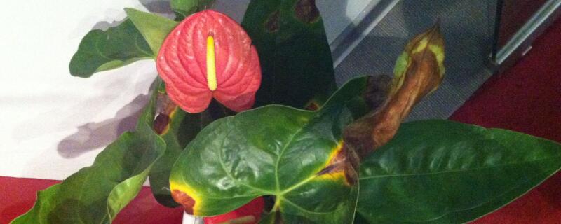 紅掌的澆水要掌握見干見濕的原則,保持土壤濕潤但不得出現(xiàn)積水,一旦澆水過多導(dǎo)致積水,植株根部就會(huì)腐爛,葉子也會(huì)出現(xiàn)黃斑。需立即停止?jié)菜?,同時(shí)松動(dòng)土壤并加強(qiáng)通風(fēng),加速水分的蒸發(fā)。