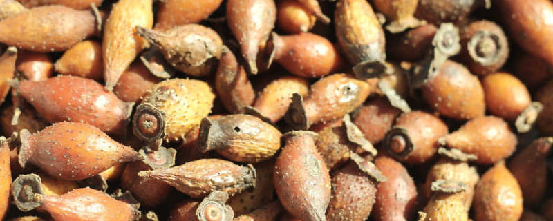 金櫻子的果實(shí)在7-11月份成熟,果實(shí)形狀為梨形或倒卵形,果實(shí)顏色為紫..
