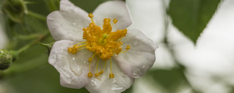 金櫻子花的顏色比較單一,它只有一種顏色,花朵的顏色為白色,它的花期時(shí)間在每年春天的4-6月份,花朵單生于葉腋,直徑直徑5-7厘米,花瓣一般有5片,花瓣的形狀為寬倒卵形,先端微凹,花蕊的顏色為黃色。