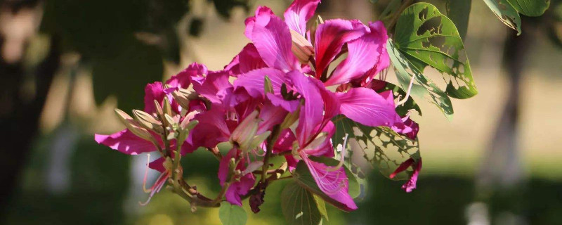 紫荊花是豆科紅花羊蹄甲屬喬木植物,它的學(xué)名是紅花羊蹄甲,還被人們稱作為洋紫荊,因?yàn)樗娜~子在頂端會(huì)裂成兩半,形狀特別像羊蹄甲,而它的花朵顏色為紅色或者紫紅色,所以才被取名為紅花羊蹄甲。