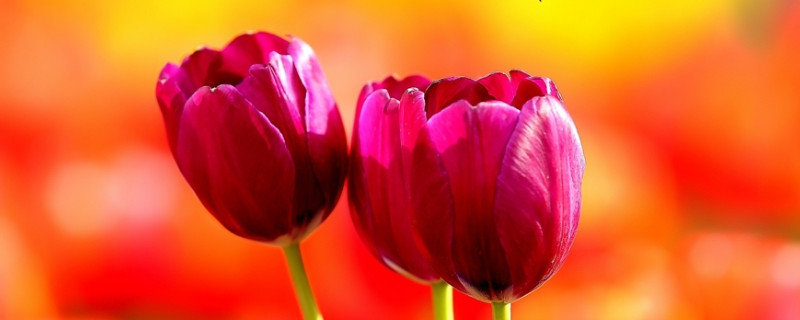 郁金香是百合科郁金香屬的多年生草本植物,它的鱗莖偏圓錐形,莖葉光滑,并被有白粉,它的葉子形狀為帶狀披針形至卵狀披針形,全緣并成波形,花期在每年的春天,花朵單生于莖頂,花型為大型的直立杯狀。