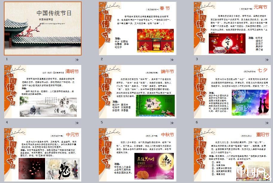 中國的傳統(tǒng)節(jié)日形式多樣,內容豐富多樣,是我們中華民族悠久的歷史文化的一個組成部分。傳統(tǒng)節(jié)日的形成過程,是一個民族或國家的歷史文化長期積淀凝聚的過程,我國的傳統(tǒng)節(jié)日,無一不是從遠古發(fā)展過來的。家佳樂文學小編為您推薦家佳樂文學中國傳統(tǒng)節(jié)日PPT模板,適用于商務演講、會議報告、論文答辯等。