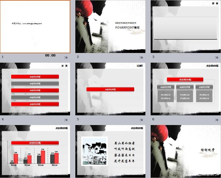 家佳樂文學(xué)水墨古城古風(fēng)PPT模板