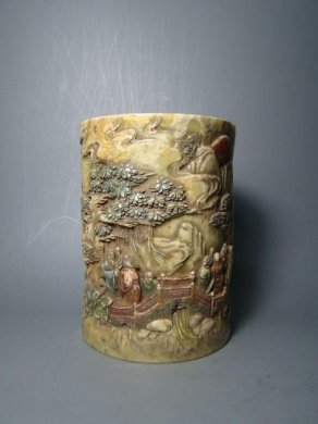 細膩通透,色澤潔白,為書房增添一抹出彩之色,請欣賞家佳樂文學小編為你帶來的釉色粉彩筆筒。……