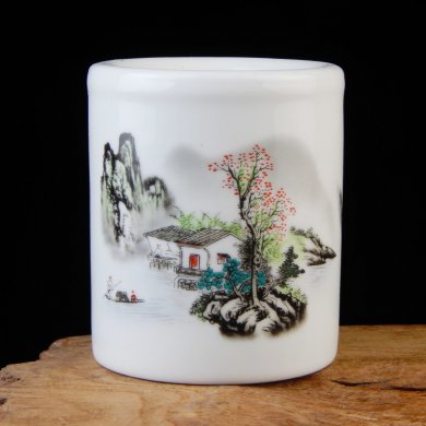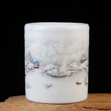 筆筒,盛置擱筆,精美雅致,歷來受人喜愛,請欣賞家佳樂文學小編為你帶來的薄胎雪景筆筒?!?/p>