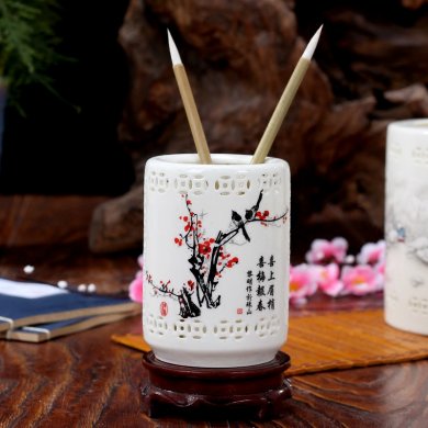 筆筒同時具備實用性和觀賞性,是書房桌案必備用品,請欣賞家佳樂文學小編為你帶來的精美象牙瓷鏤空筆筒。……