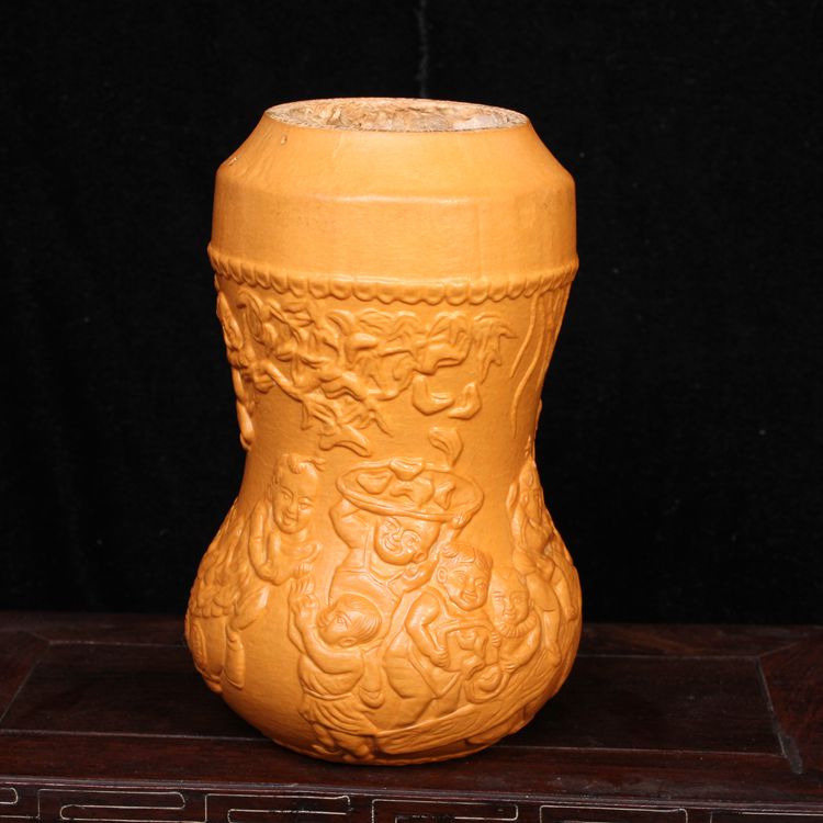 籠子做的很規(guī)矩,榫頭、拱頂?shù)鹊胤阶龅木媲缶?。鉤子、葫蘆全部手工,用料都是帶皮竹子,隨著把玩時間的沉淀會越來越紅潤。