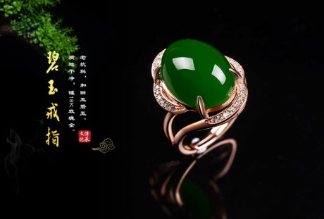 水潤亮澤,盈色滿綠,請欣賞家佳樂文學小編為你帶來的金配鑲嵌和田玉戒指 。……