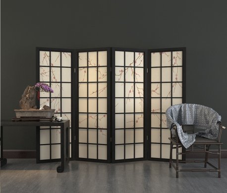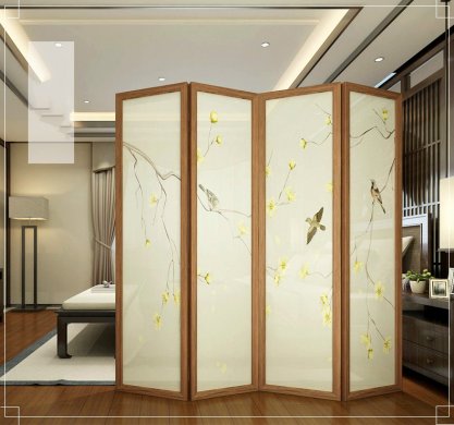 屏風(fēng)一般陳設(shè)于室內(nèi)的顯著位置,起到分隔、美化、擋風(fēng)、協(xié)調(diào)等作用。它與古典家具相互輝映,相得益彰,渾然一體,成為家居裝飾不可分割的整體,而呈現(xiàn)出一種和諧之美、寧?kù)o之……