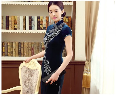 復(fù)古領(lǐng)口設(shè)計,利落干凈,修飾身形和臉型,簡約的袖口,直線規(guī)整,穿著舒適,流暢的裁剪,適度的開叉,性格而不俗套。下面家佳樂文學(xué)小編為你帶來絲絨長款旗袍,改良中式旗袍?!?/p>