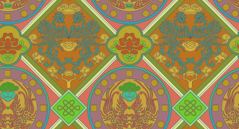 中國傳統(tǒng)龍鳳呈祥圖案與配色,矢量素材Ai圖片