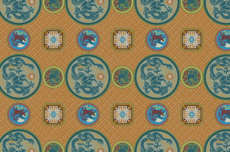 中國(guó)元素傳統(tǒng)織錦圖案與配色,矢量素材AI圖片