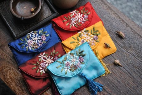 這款袋子每一個都很傳統(tǒng),很古意,也蠻值當。這些老祖宗留下的顏色都非常蠻耐看,也非常端莊大氣的。袋子是用絲綢做的,古風緞面的小首飾袋,手工絲帶繡花配小流蘇,精致婉約……