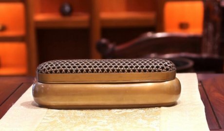 日本高岡銅器,福獅子香爐。平滑細(xì)致的鑄體,耐人尋味的色澤,精致的紋理和造型以及充滿(mǎn)動(dòng)感的曲線(xiàn),令人一見(jiàn)鐘情,愛(ài)不釋手。從小到可以納入掌中的文具,到香爐、花瓶、茶器、……